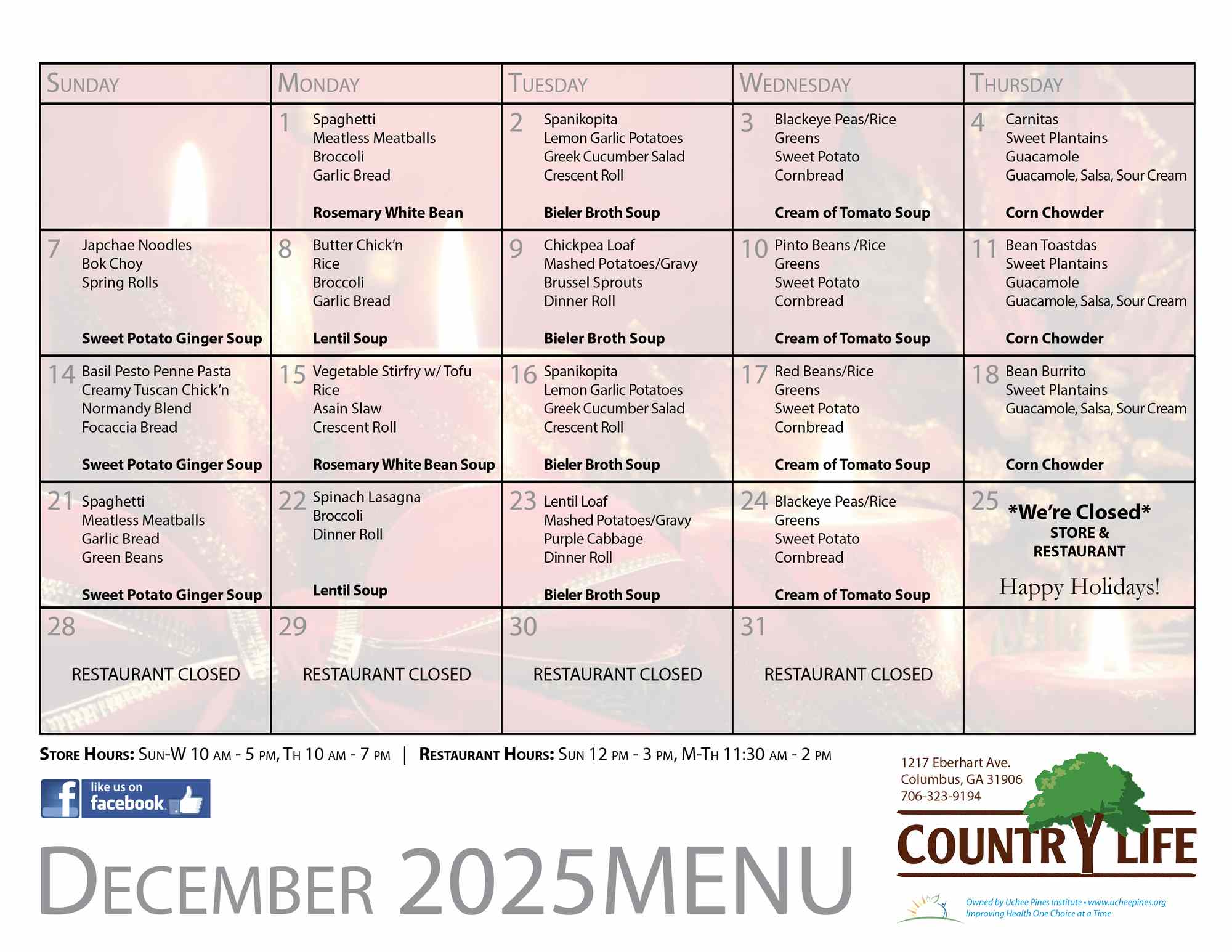 *Click on Menu to enlarge.